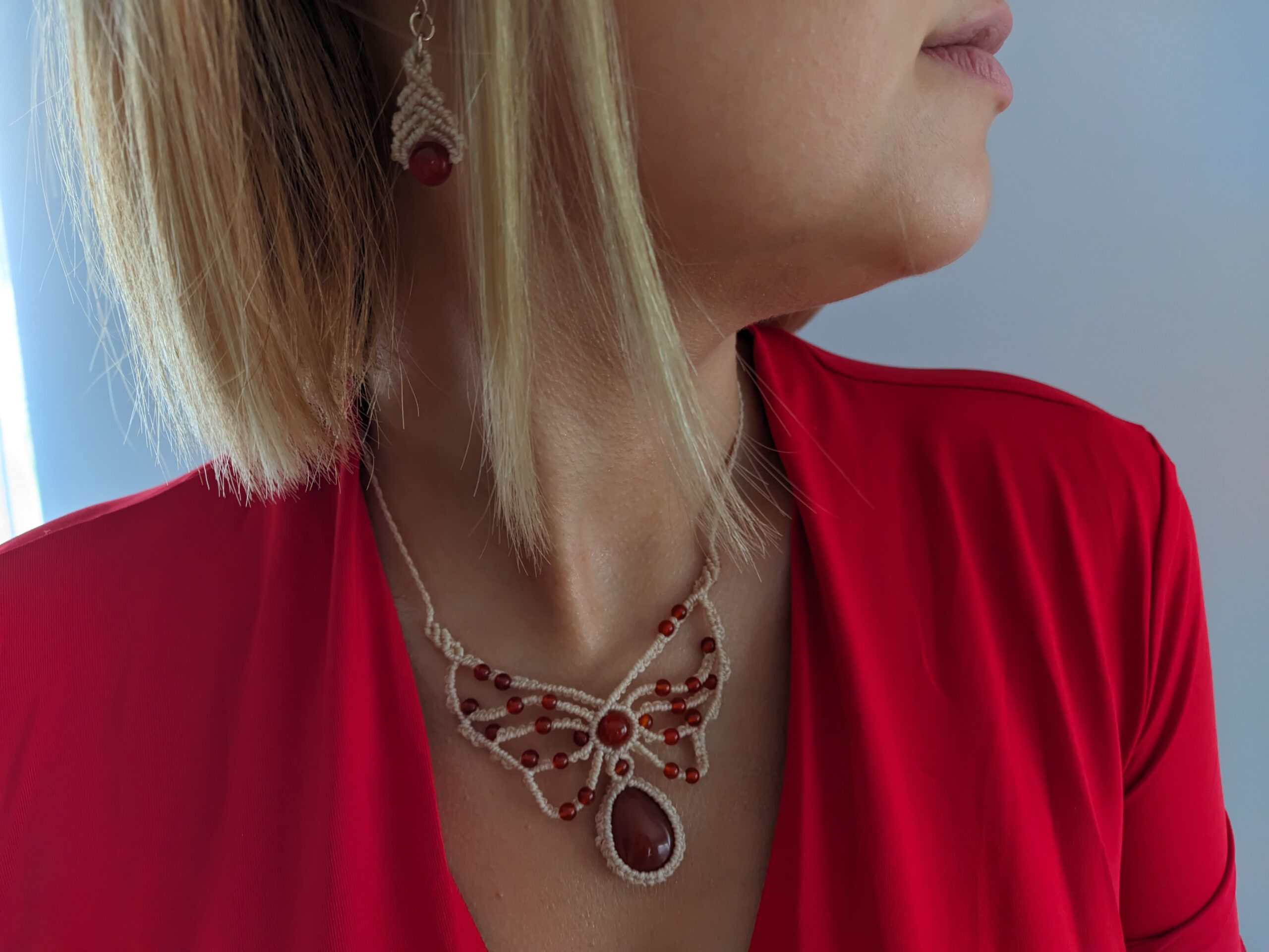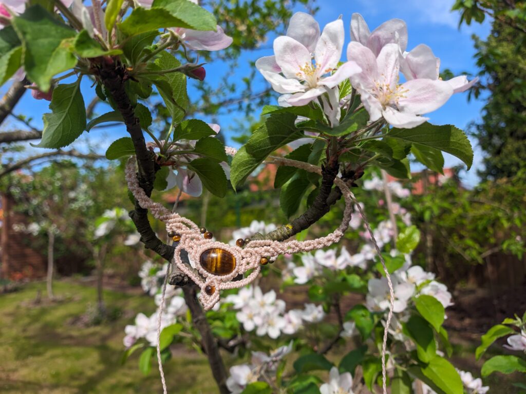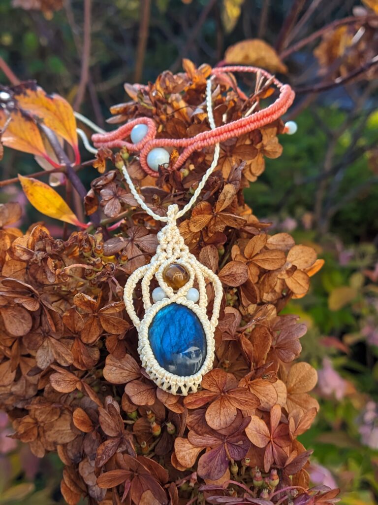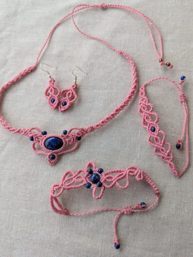 Każdy projekt powstaje w całości ręcznie, w technice micromakramy. W nici wplatane są naturalne elementy, które nadają biżuterii wyjątkowy, organiczny charakter. To rękodzieło tworzone z sercem, cierpliwością i artystyczną duszą