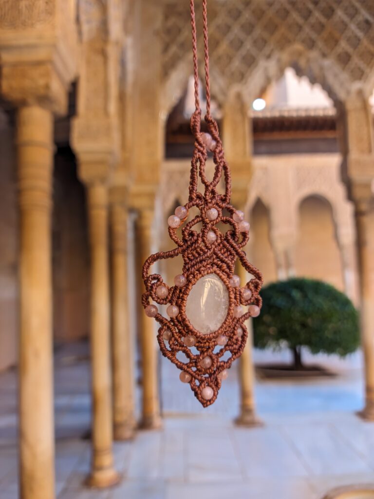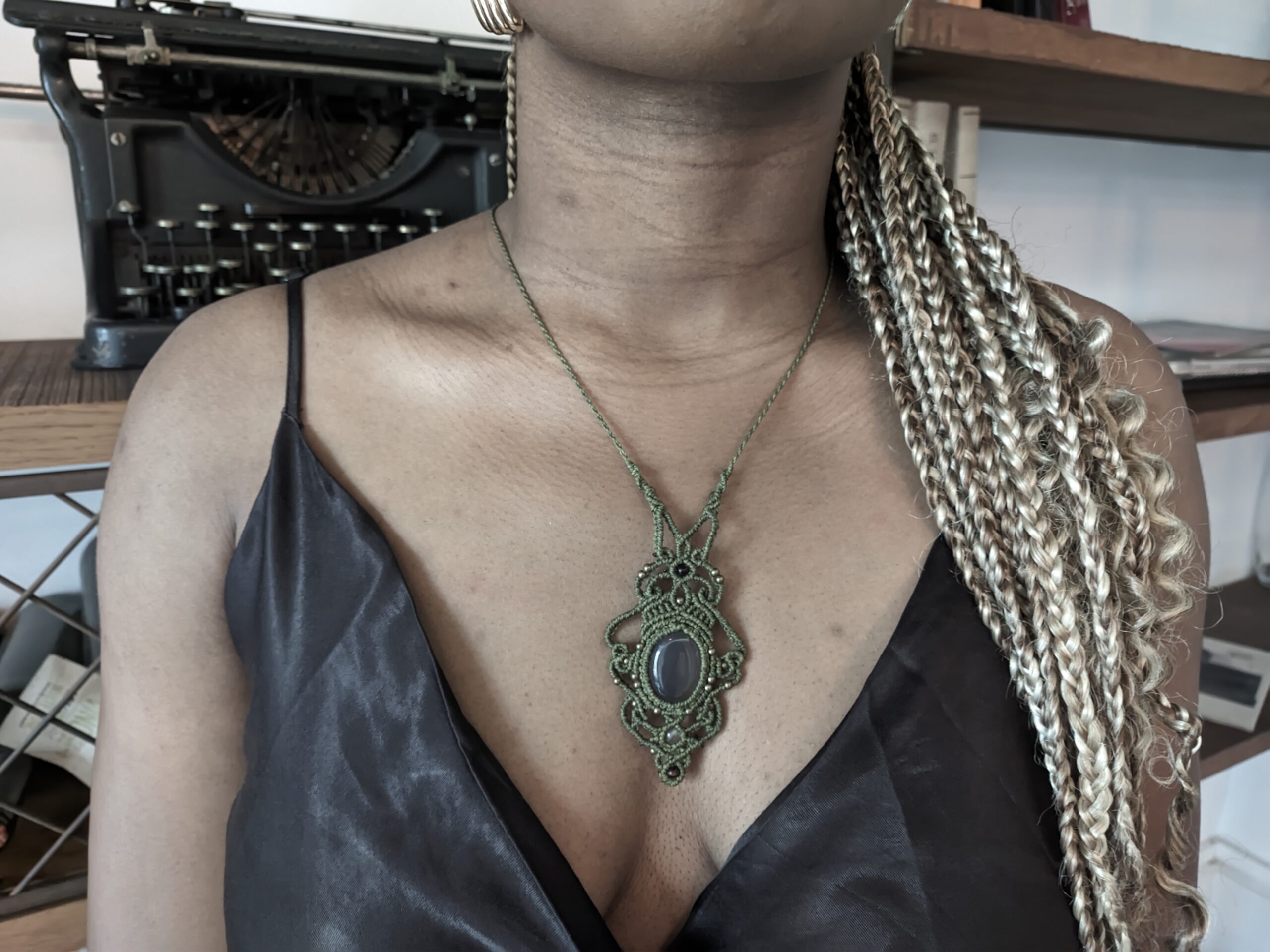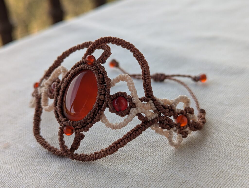 Każdy projekt powstaje w całości ręcznie, w technice micromakramy. W nici wplatane są naturalne elementy, które nadają biżuterii wyjątkowy, organiczny charakter. To rękodzieło tworzone z sercem, cierpliwością i artystyczną duszą