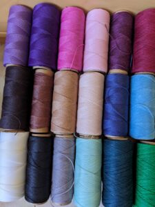 Dobór kolorów nici to etap, który odbywa się bez pośpiechu. Przykładam różne odcienie do kamienia i obserwuję, jakie emocje wywołuje dana kombinacja. Ten sam kamień w połączeniu z różnymi kolorami może dawać zupełnie inne wrażenie — radości, powagi, głębi albo lekkości. Zdarza się też, że źle dobrany kolor odbiera kamieniowi jego charakter, dlatego ten etap wymaga uważności.